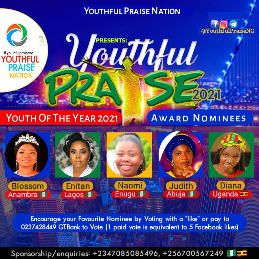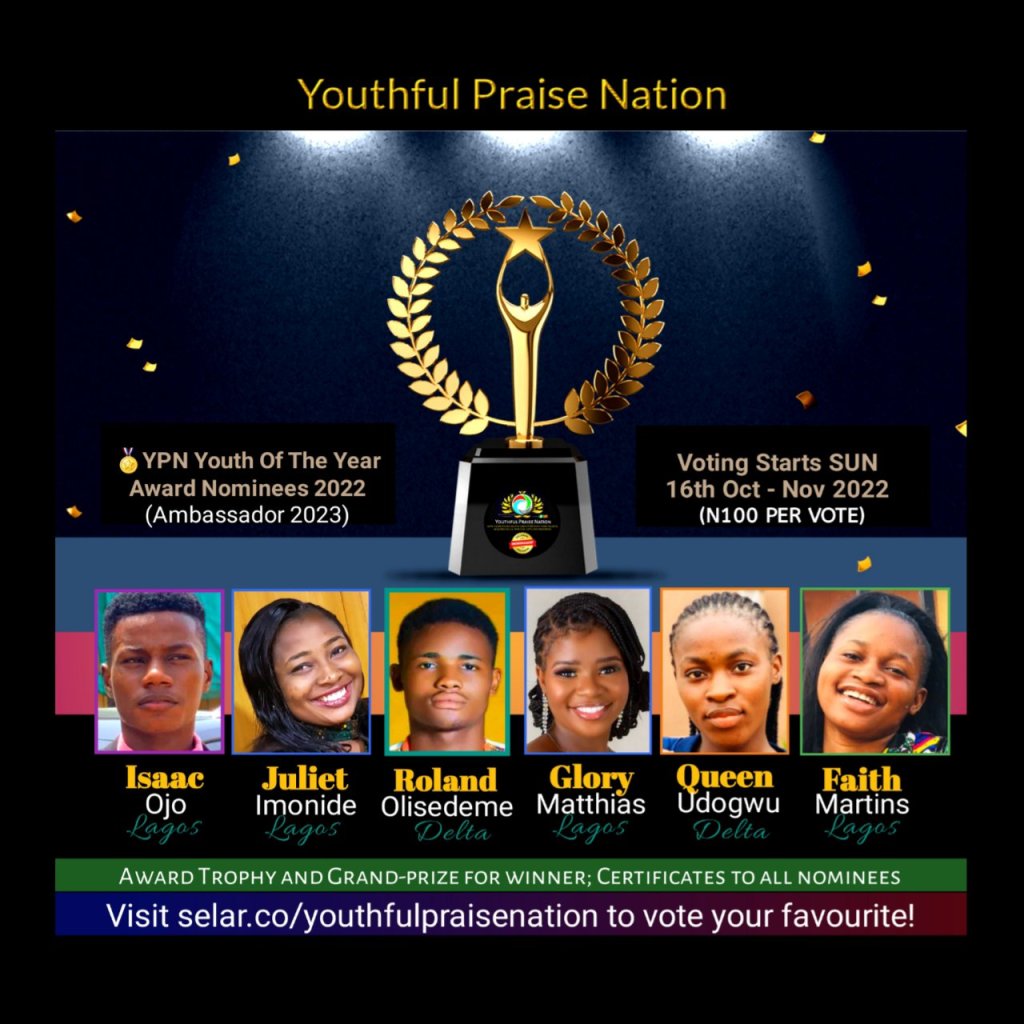 Thank you for supporting by voting your favourite award nominee, to win youthful praise nation’s Youth Of The Year Award 2022 and 2023 Ambassador with cash prize + award trophy.